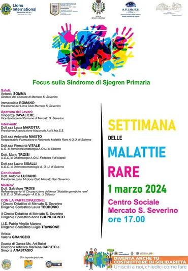Il Comune di Mercato San Severino, in collaborazione con il Lions Club Mercato San Severino nell'ambito della celebrazione della settimana delle Malattie Rare, organizza venerdì 1 marzo, alle ore 17:00