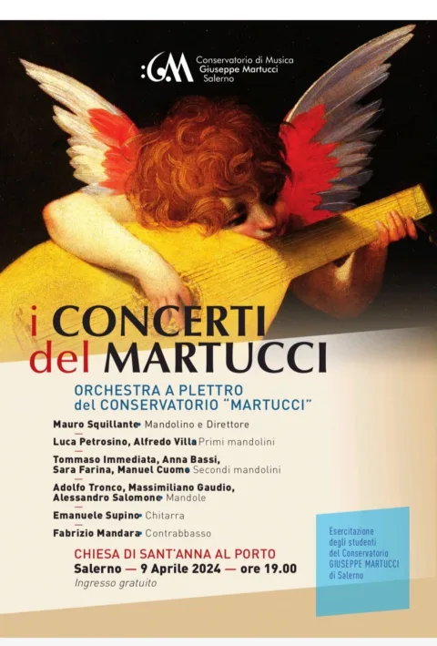 Ad esibirsi sarà l'orchestra a plettro del conservatorio di Salerno con Mauro Squillante, mandolino e direttore, Luca Petrosino e Alfredo Villa primi mandolini, Tommaso Immediata, Anna Bassi, Serena Farina