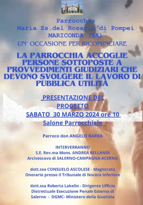 UN OCCASIONE PER RICOMINCIARE... Per la prima volta a Salerno, con questo motto, la parrocchia "Maria SS. del Rosario di Pompei a Mariconda, accoglie tre lavoratori di pubblica utilità, dediti