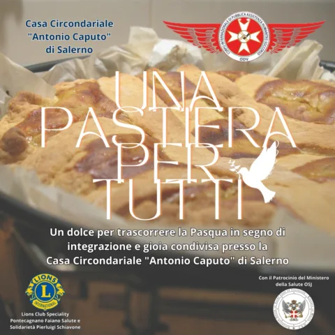 Giovedì 28 marzo 2024, l’Associazione Universo Humanitas, accompagnata dal Presidente Roberto Schiavone di Favignana, consegnerà gli ingredienti per le Pastiere di Grano agli ospiti della Casa Circondariale di Salerno per
