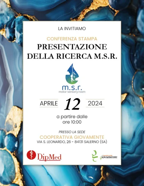 La Cooperativa Giovamente ha il piacere di invitare alla Conferenza Stampa di presentazione della ricerca M.S.R. (Motor Sensory Room), condotta in collaborazione con l'Università degli Studi di Salerno Dipartimento di