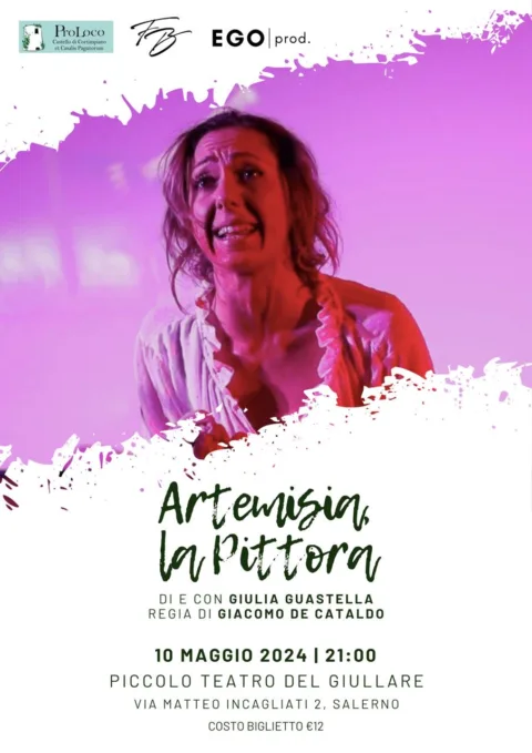 Venerdì 10 maggio al Piccolo Teatro del giullare di Salerno, alle ore 21:00, entrerà in scena Artemisia la pittora con l'attrice Giulia Guastella per la regia di Giacomo De Cataldo.