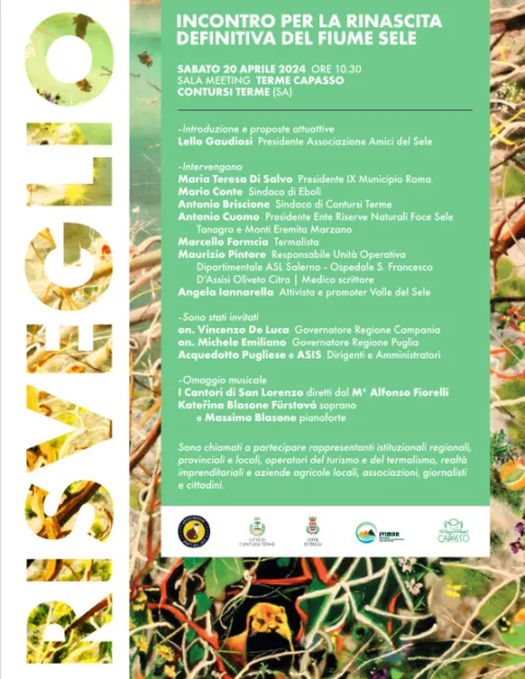 Sabato 20 aprile, presso la sala meeting delle Terme Capasso Contursi Terme, alle ore 10:30 ci sarà l'incontro per la rinascita definitiva del fiume Sele.