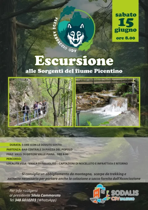 Sabato 15 giugno alle ore 8:00, le associazioni Verde Abbraccio e Sodalis, attraverso dei laboratori di cittadinanza organizzano l'evento Escursioni alla sogente del fiume Picentino. Il programma ha la durata
