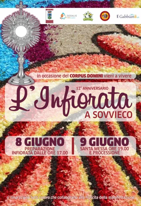 12°ANNIVERSARIO DELL' INFIORATA A SOVVIECO, GIFFONI VALLE PIANA L'8 e 9 giugno, nella frazione Sovvieco di Giffoni Valle Piana si rinnova il consueto appuntamento con la tradizionale Infiorata, in occasione