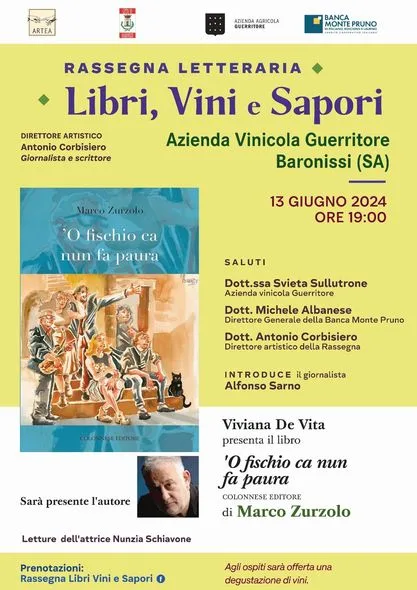 Giovedì 13 giugno alle ore 19:00, presso l'azienda vinicola Guerritore in Via Nocelleto a Baronissi, ci sarà un evento letterario organizzato da Antonio Corbisiero e introdotto dal giornalista Alfonso Sarno.