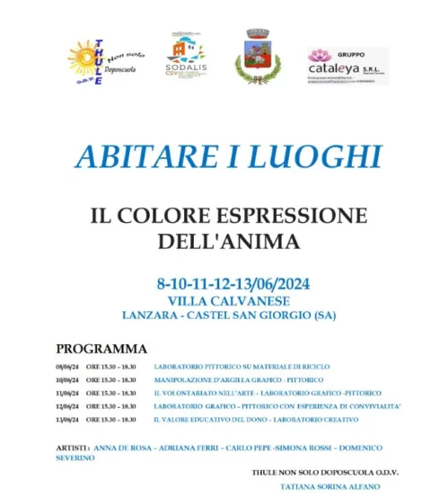 Le associazioni Sodalis e Thulenon solo doposcuola O.D.V., organizzano l’evento 'Il colore espressione dell’anima' alla Villa Calvese (Lanzara - Castel San Giorgio). L’uomo da sempre ha avuto bisogno di esprimersi