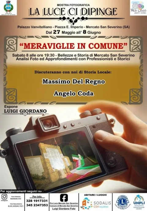 La serata finale della rassegna fotografica 'La Luce ci dipinge', organizzata dalla Pro Loco Mercato San Severino e da Sodalis, sarà dedicata alle bellezze e alla storia locale. L'incontro dal