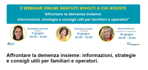 Informazioni, strategie e consigli utili per familiari ed operatori afferte nei tre webinar di un ora e trenta tenuti, il giorno 11 giugno, dalla geriatra Benedetta Cerasoli, dalla psicologa
