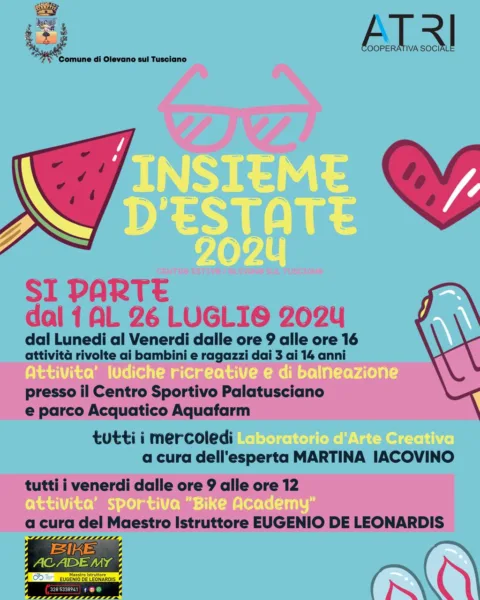 Le attività ludico ricreative e di balneazione si svolgeranno presso il centro sportivo Palatusciano e al parco acquatico acquafarm dal lunedì al venerdì dalle 9 alle 16 aperte a bambini