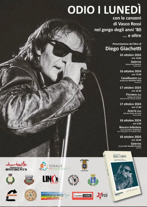 Sono sei incontri in cui sarà presentato, in contesti differenti, il libro di Diego Giachetti “Odio i lunedÏ Con le canzoni di Vasco Rossi nel gorgo degli anni ’80….e oltre”.