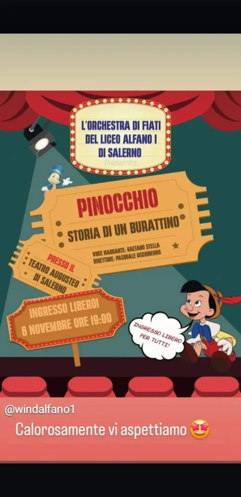 Mercoledì 6 novembre alle ore 19:00, presso il Teatro Augusteo, ci sarà lo spettacolo 'PINOCCHIO, STORIA DI UN BURATTINO' con la voce narrante di Gaetano Stella. Ci sarà anche la
