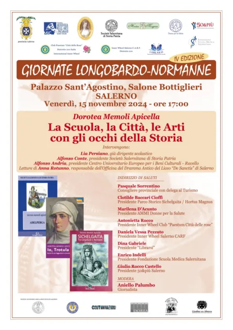 Venerdì 15 novembre alle ore 17:00, presso il Palazzo Sant'Agostino, Salone Bottiglieri a Salerno ci sarà l' evento 'La Scuola, la Città, le Arti con gli occhi della Storia' in