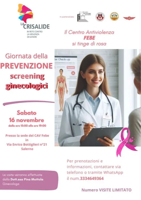 E’ la seconda iniziativa organizzata dal centro antiviolenza FEBE presso la propria sede di via Enrico Bottiglieri a Salerno nella parrocchia di San Giuseppe Lavoratore. Le visite saranno effettuate dalle