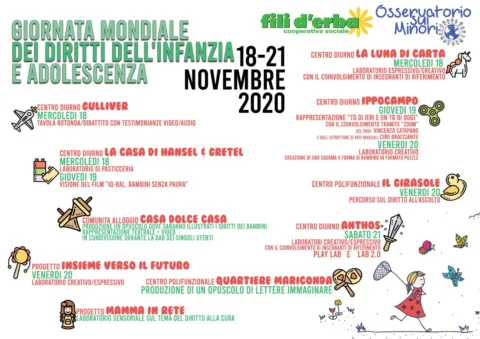 In occasione del 35° anniversario della Giornata Internazionale dei Diritti dell'Infanzia e dell’Adolescenza la cooperativa sociale Fili d’erba e l’associazione Osservatorio sui minori organizzano in tutte le strutture ed i