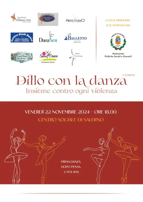 Venerdì 22 novembre, alle ore 18:00, al Centro Sociale di Salerno, contro la violenza di genere ritorna con la seconda edizione "Dillo con la danza…contro ogni violenza". Un iniziativa sostenuta
