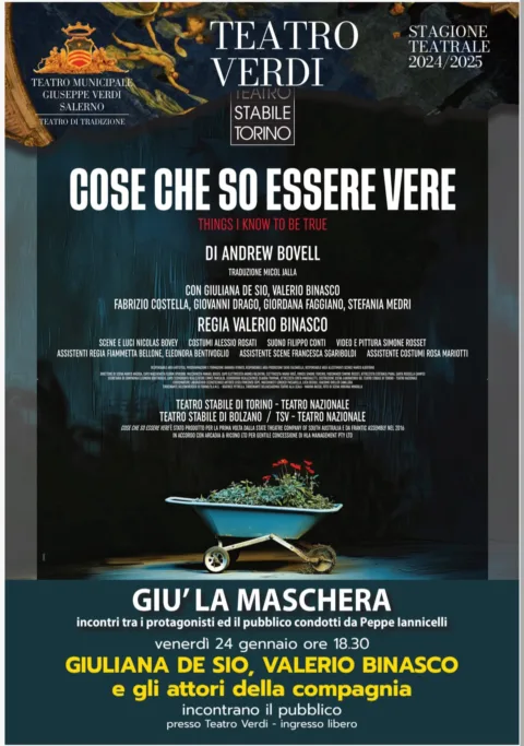 Venerdi 24 gennaio alle ore 18:30, presso il Teatro Municipale Giuseppe Verdi (via Roma a Salerno), Giuliana De Sio e Valerio Binasco saranno protagonisti dell’incontro Giù la maschera. Lo spettacolo