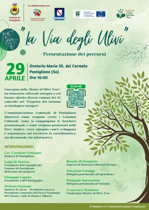 Uncategorized Postiglione celebra la Via degli Ulivi, il percorso culturale e turistico europeo. Presentazione martedì 29 aprile alle 16 presso l’oratorio parrocchiale Maria Santissima del Carmelo di Postiglione Postiglione (Sa). “La valorizzazione e lo sviluppo del territorio passano anche attraverso la promozione della cultura contadina di protezione e tutela dell’ambiente, della terra e dei suoi frutti. Con il Elpis Social TV10 mesi faContinua a Leggere