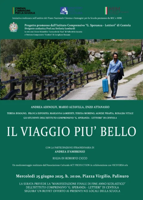 Mercoledì 25 giugno alle ore 20:00 in piazza Virgilio a Palinuro si terrà la “Manifestazione di fine anno scolastico dell'Istituto Comprensivo “Speranza – Lettieri” di Centola, diretto dalla professoressa Stefania