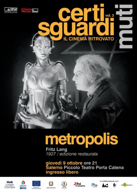 Giovedì prossimo, 9 ottobre 2025, al Piccolo Teatro Porta Catena di Salerno, a conclusione della rassegna “Certi sguardi muti", verrà proiettato il film Metropolis di Fritz Lang. Uno dei film