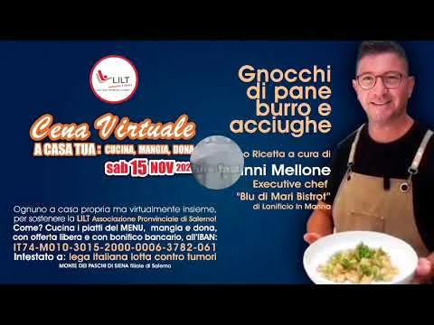 la ricetta del Primo Piatto realizzato all'insegna del "riciclo" dall'executive chef Gianni Mellone da cucinare il prossimo 15 novembre. Buon Appetito. Chi vuole contribuire all'iniziativa potrà versare un contributo intestato