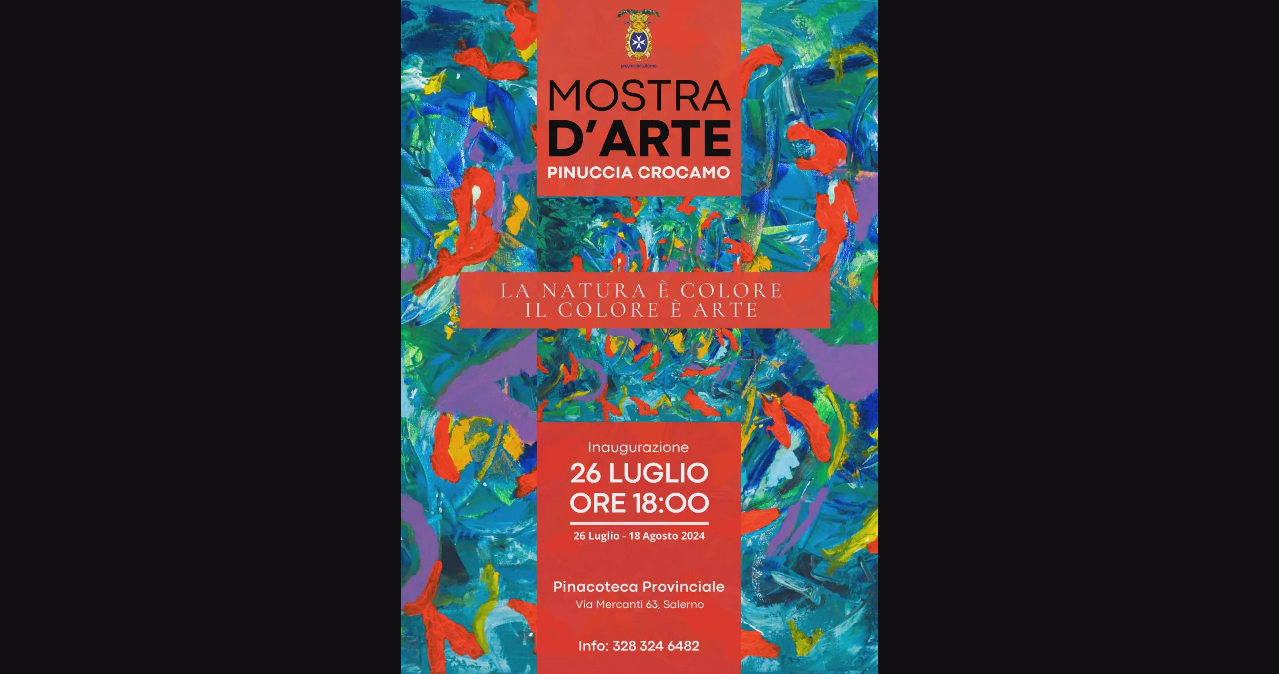 Venerdì 19 luglio alle ore 10,30, nella sala Giunta di Palazzo sant’Agostino si terrà la conferenza stampa di presentazione della mostra di Pinuccia Crocamo “La natura è colore, il colore è arte”. Insieme all’artista saranno presenti il vice presidente della Provincia di Salerno Giovanni Guzzo e il consigliere provinciale delegato alla cultura Francesco Morra. La mostra “La natura è colore, il colore è arte” sarà inaugurata il 26 luglio 2024 alle ore 18,00 presso la Pinacoteca provinciale di Salerno. In quell’occasione parteciperà anche Antonella Nigro, critico d’arte. Le opere rimarranno in esposizione fino al 18 agosto.