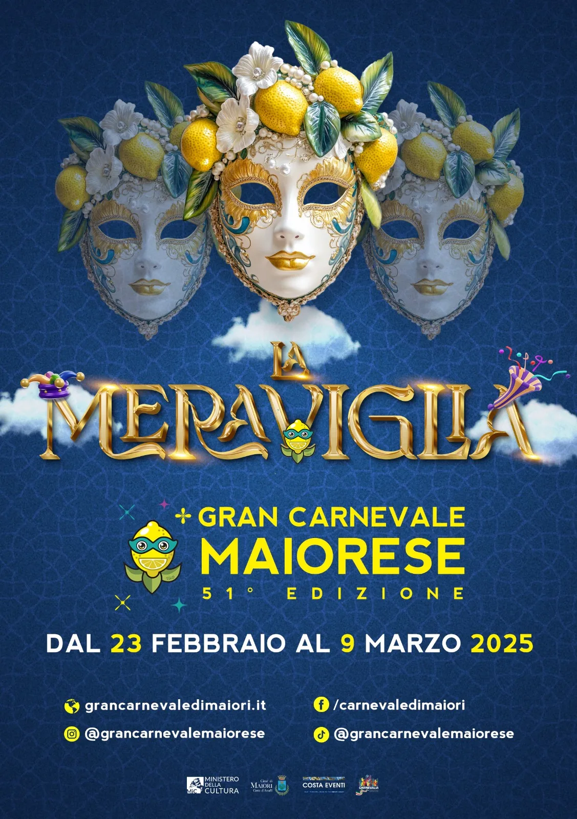 Dal 23 febbraio al 9 marzo dalle ore 15:30, quattro sfilate dei carri allegorici, spettacoli musicali, eventi culturali e iniziative per ragazzi animeranno l’evento. Tra le iniziative collaterali due imperdibili serate con Rosalia Porcaro e la Dance Anni 90 all’anfiteatro del Porto di Maiori.