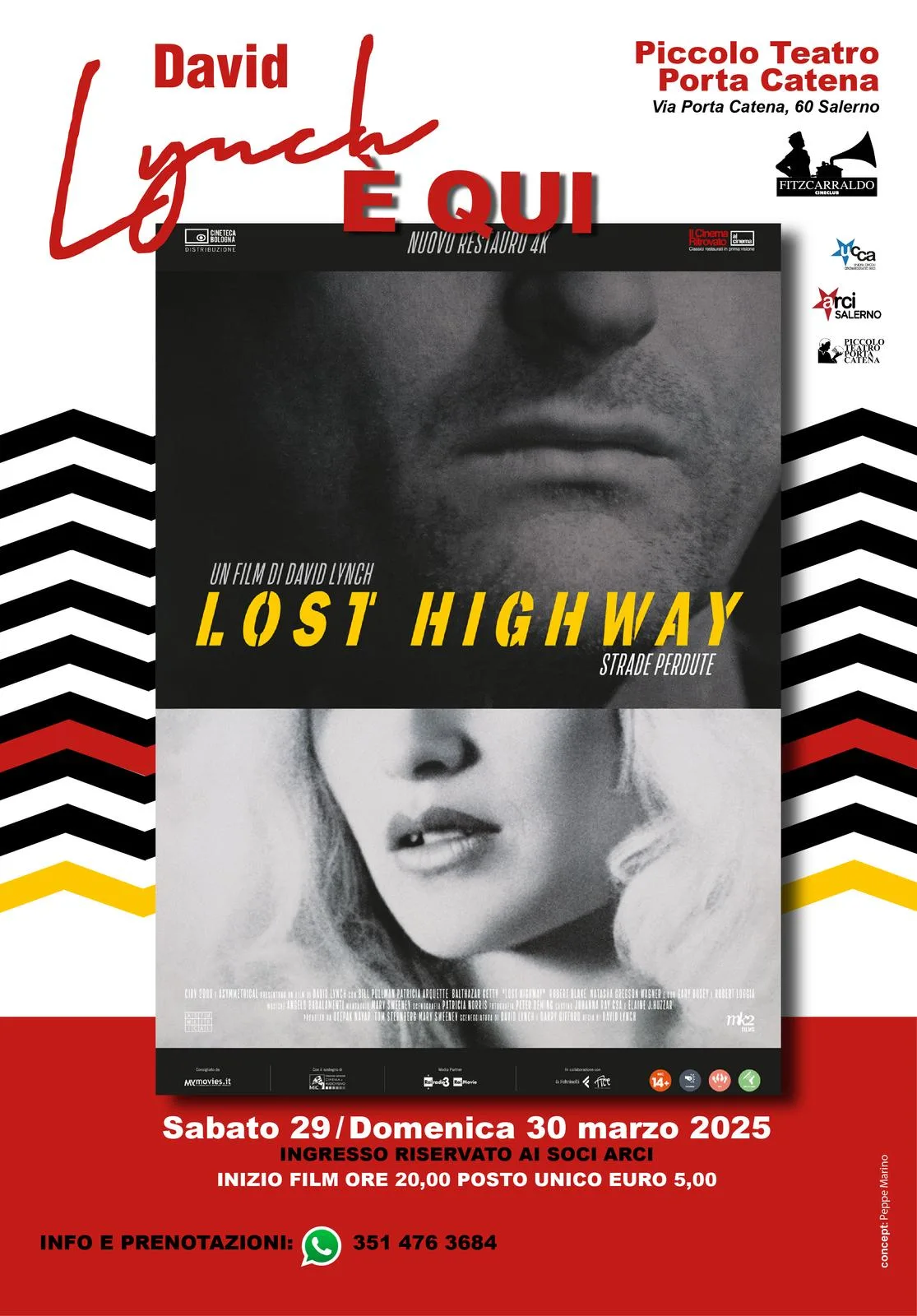 Questo e altri incubi, per un ultimo, “tranquillo” weekend di pura passione cinefila nel segno di David Lynch, al Piccolo Teatro Porta Catena di Salerno. Il Fitzcarraldo cineclub presenta: “Strade perdute” (Lost Highway), Usa/1996, 134’, in v.o. con sottotitoli in italiano e, per la prima volta a Salerno, in edizione restaurata con la supervisione dello stesso David Lynch.