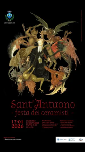 Com’è ormai consuetudine, anche quest’anno torna a Vietri sul Mare la tradizionale Festa dei Ceramisti. Sabato 17 gennaio 2026 nel piazzale antistante la stazione ferroviaria si terranno le speciali iniziative in occasione del giorno di Sant’Antonio Abate, patrono degli animali domestici, del fuoco e di quanti hanno a che fare con lui: dei pizzaioli, dei panettieri, dei pompieri e, ovviamente, dei ceramisti.