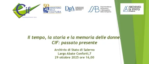 La memoria delle donne torna protagonista all’Archivio di Stato di Salerno, dove il prossimo 29 ottobre 2025, alle ore 16.00, si terrà l’incontro “Il tempo, la storia e la memoria