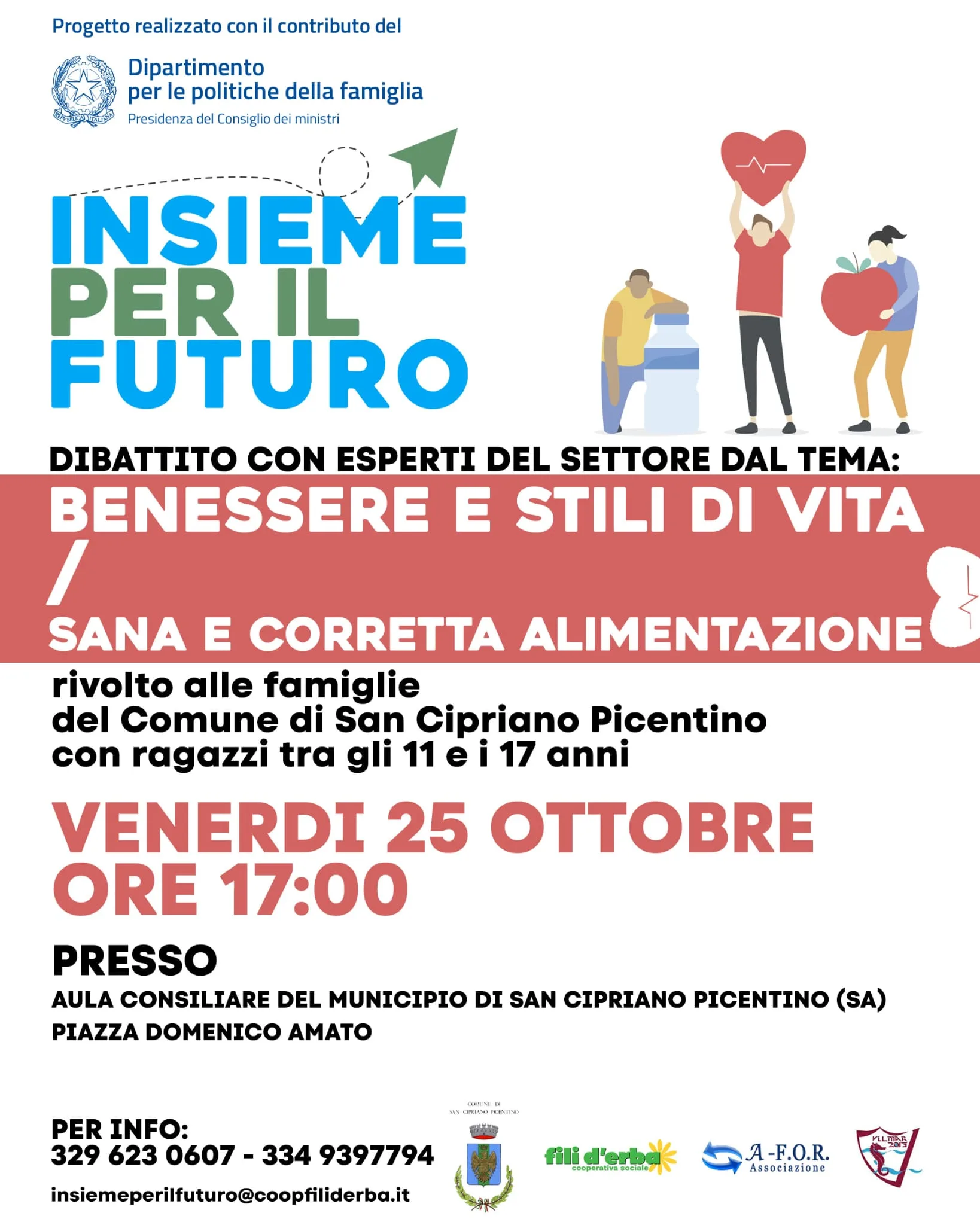 Ad organizzare l’evento venerdì prossimo 25 ottobre alle 17, presso l’aula consiliare del comune di San Cipriano Picentino, la cooperativa sociale Fili d’erba ed A-F.O.R. Associazione per la Formazione, l’Orientamento e le Risorse umane, in collaborazione con il Comune di San Cipriano Picentino. Al dibattito BENESSERE E STILI DI VITA-CORRETTA E SANA ALIMENTAZIONE, saranno presenti esperti del settore che mostreranno i risultati di un’indagine anonima svolta tra i ragazzi del territorio di età compresa tra gli 11 e i 17 anni. Verranno analizzate le principali criticità emerse, offrendo consigli pratici e personalizzati per migliorare le abitudini alimentari e lo stile di vita. Il seminario presenterà inoltre buone pratiche per una dieta equilibrata e sostenibile,sottolineando l’importanza di prevenire i comportamenti a rischio. L’iniziativa rientra nel progetto“Insieme per il futuro” realizzato con il contributo del Dipartimento per le Politiche della Famiglia della Presidenza del Consiglio dei Ministri, relativo all’Avviso pubblico “Educare Insieme”. Un’iniziativa finalizzata ad offrire attività educative e ludiche, gratuite, per minori dagli 11 ai 17 anni, nel Comune di San Cipriano Picentino. Insieme agli enti promotori su detti al progetto ha collaborato la società Sportiva Dilettantistica Vilmar 2013. Il progetto è sostenuto ed accompagnato dal Comune di San Cipriano Picentino, dalle Parrocchie locali e dalla L.I.P.U. – Sezione Provinciale di Salerno