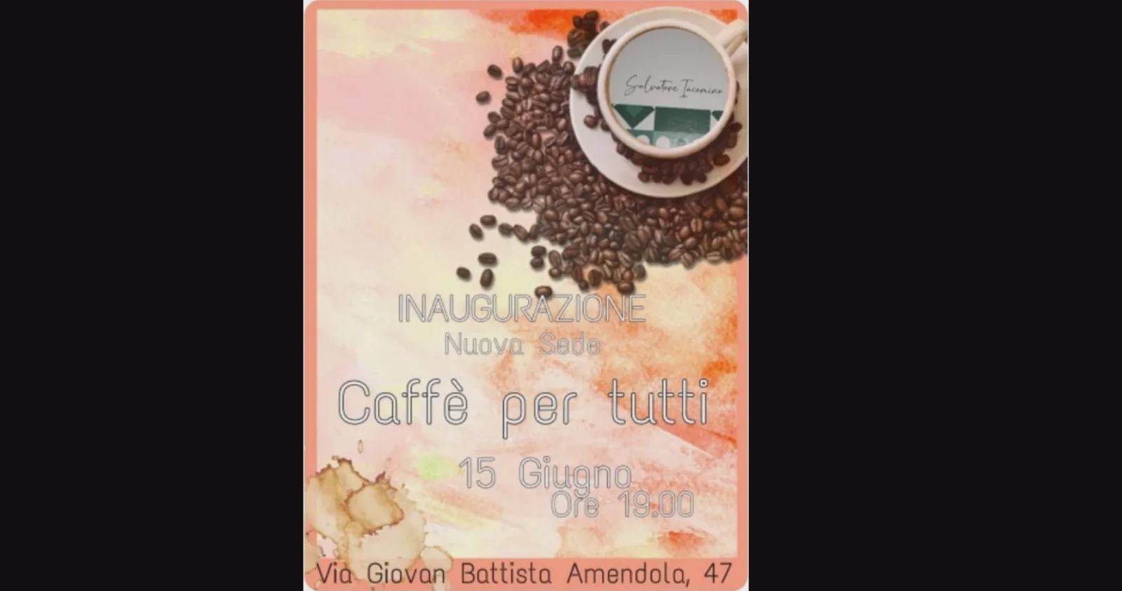 Sabato 15 giugno alle ore 19:00, ci sarà l’inaugurazione del bar ‘Caffè per tutti 2.0’ nella nuova sede in via Giovan Battista Amendola, 47 a Salerno.