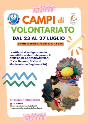 Dal 23 al 27 luglio avranno inizio ‘Campi di volontariato’, iniziativa dedicata a bambini dai 10 a 12 anni organizzata dalla Protezione Civile Bellizzi e SODALIS CSV.