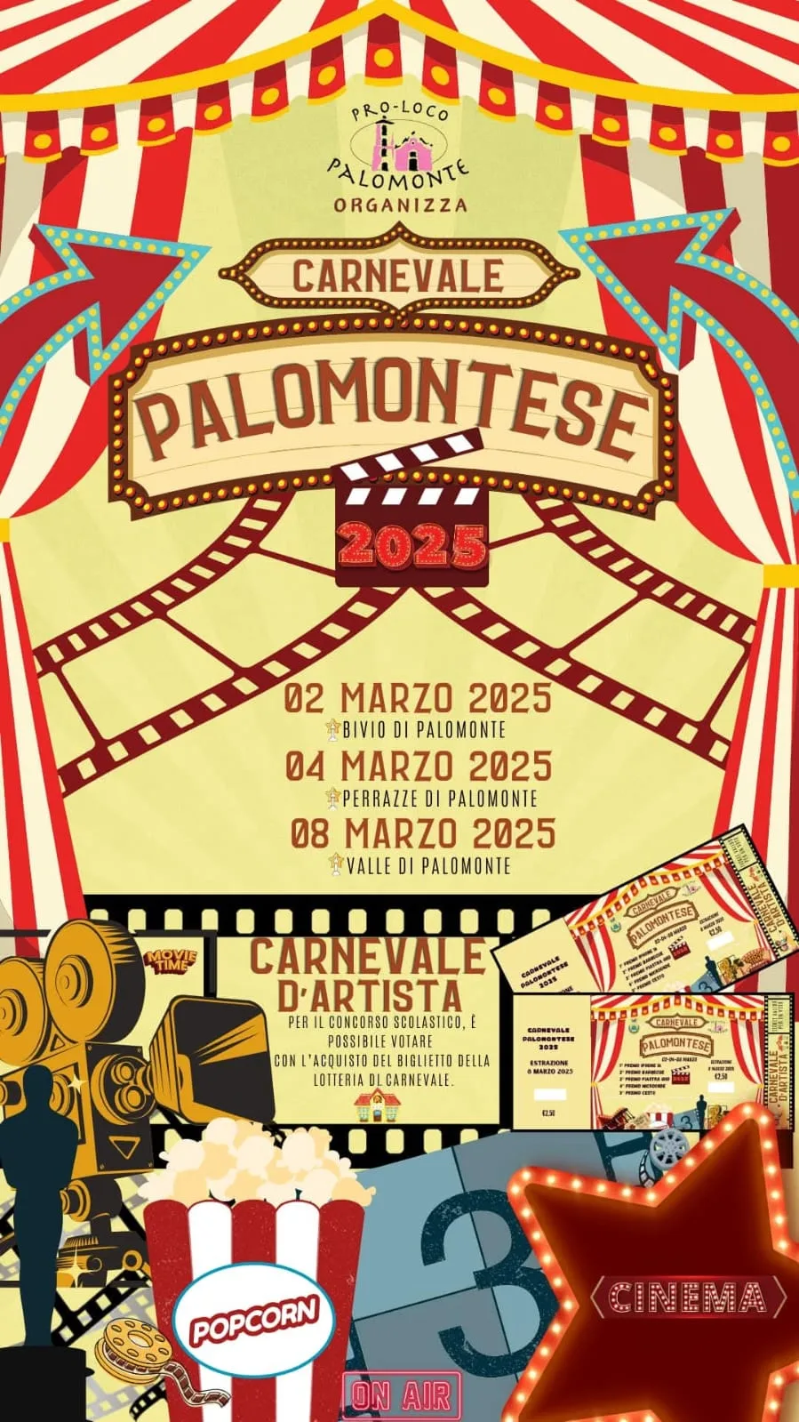 2, 4 e 8 marzo 2025, lungo le strade e nelle piazze del piccolo e affascinante borgo del comune di Palomonte si celebrerà il carnevale che quest’anno celebrerà il cinema e la tv.