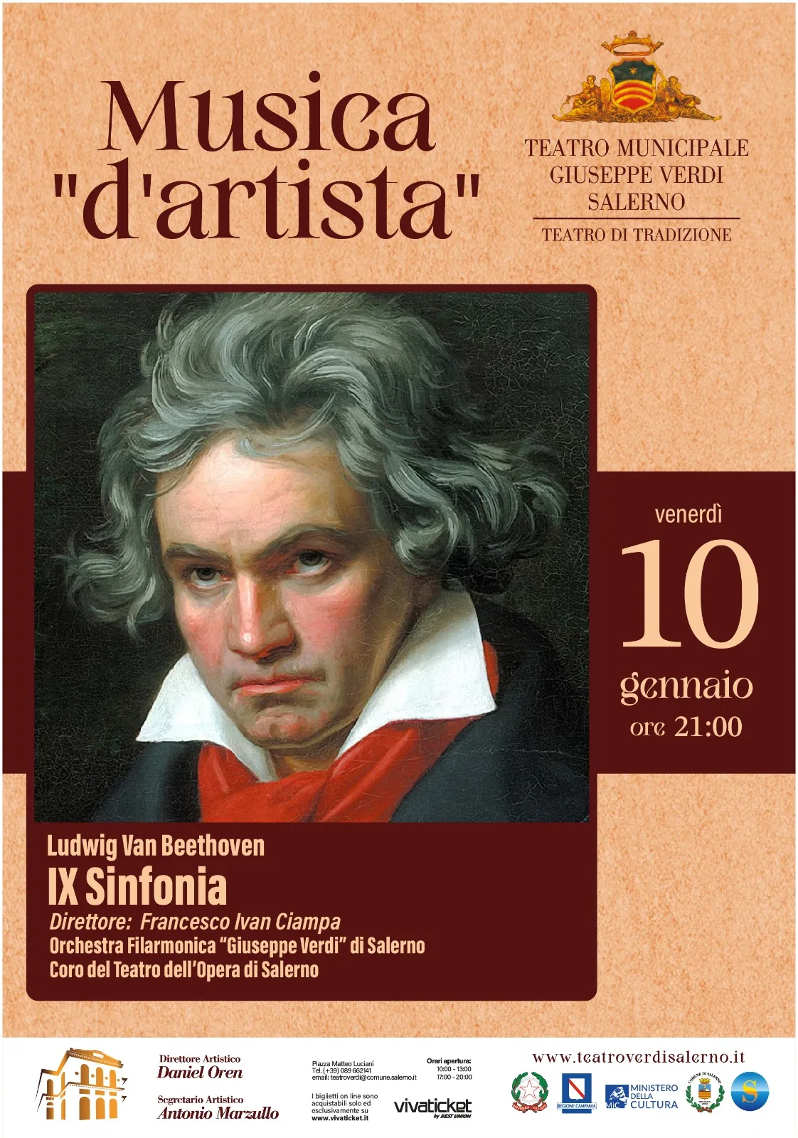 Prosegue con successo la rassegna “Musica d’Artista” organizzata dal Comune di Salerno con il sostegno della Regione Campania. Dopo Traviata ed il doppio Concerto di Capodanno il cartellone propone tre spettacoli di grande interesse: omaggio a F. Sinistra, A Christmas Carol e Nona Sinfonia di Beethoven.