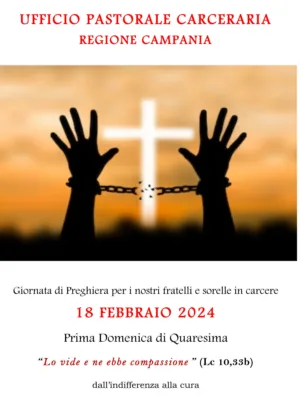 E’ stata la Conferenza Episcopale Campana ad istituire la Giornata di preghiera dedicata agli istituti penitenziari della nostra regione in programma il 18 febbraio, prima domenica di Quaresima. Per l’occasione l’Ufficio per la Pastorale Carceraria di Salerno, guidato dal direttore Don Rosario Petrone, ha invitato tutte le parrocchie a continuare l’opera di sensibilizzazione, mettendo in atto iniziative che siano da stimolo per superare i pregiudizi ptomuovendo una raccolta di indumenti intimi e prodotti per l’igiene personale per i detenuti, presso la parrocchia San Demetrio Martire di Salerno.