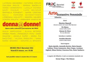 Al museo Frac di Baronissi alle ore 19 del giorno 8 marzo, ci sarà il dibattito Arte Sostantivo Femminile.