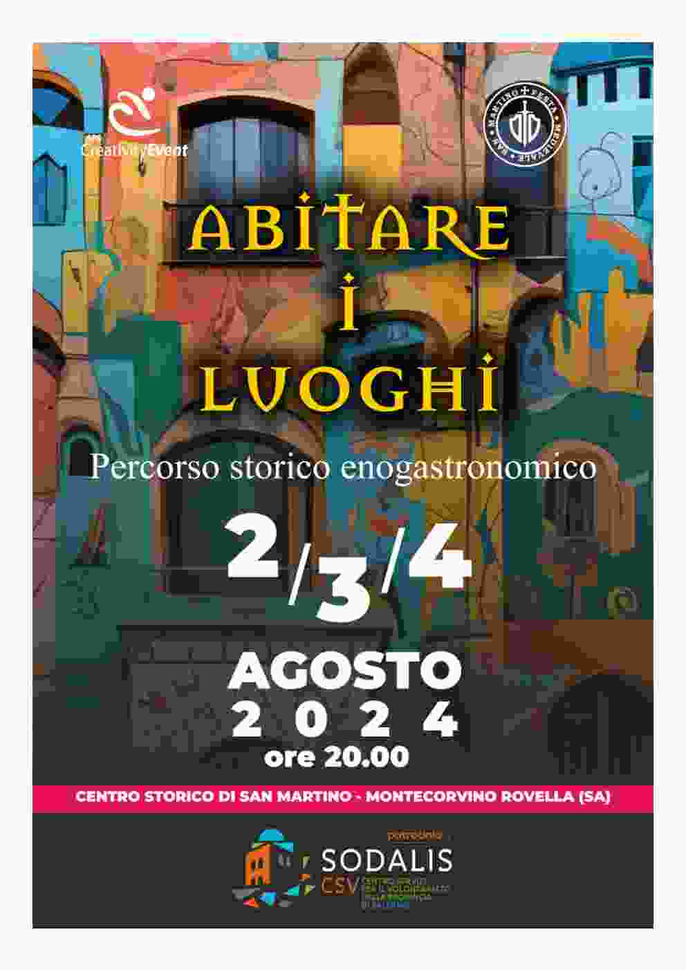 Dal 2 al 4 agosto dalle ore 20.00 presso il centro storico della frazione di San Martino di Montecorvino Rovella, ci sarà il Festival Medievale organizzato dall’associazione Creativity event e Sodalis, nell’ambito di Abitare i luoghi.