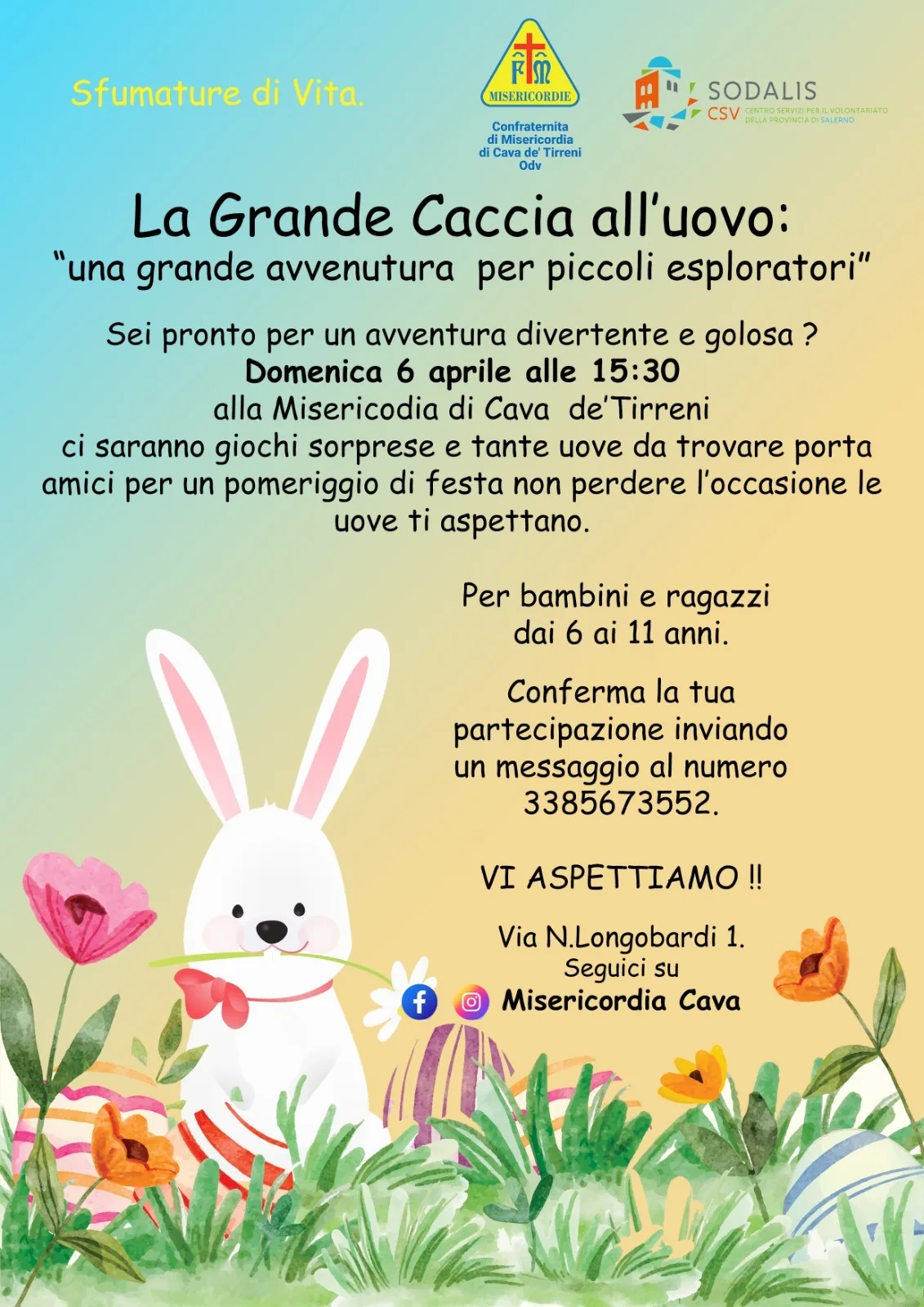 Domenica 6 aprile alle 15:30 in via Longobardi 1 Cava de’ Tirreni ci sarà l’evento Grande Caccia all’Uovo. I bambini con le loro famiglie potranno partecipare a una divertente caccia al tesoro alla ricerca di uova di cioccolato nascoste.