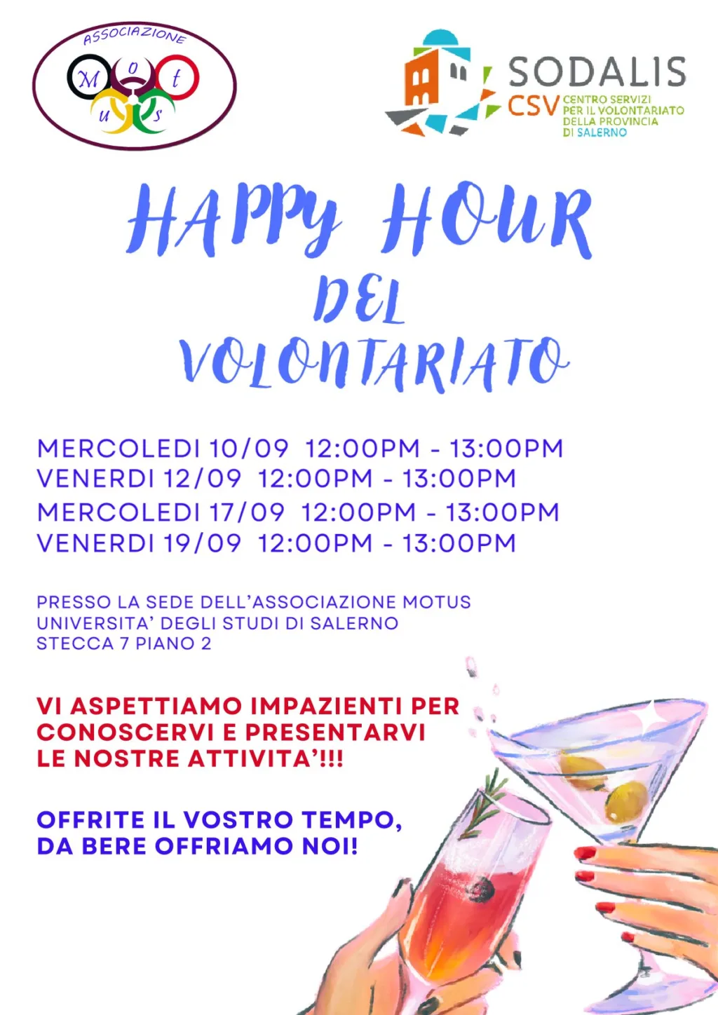 L’Associazione Motus e Sodalis, nell’ambito di abitare i luoghi, incontrano gli studenti all’Università di Salerno nel Happy Hour del Volontariato.