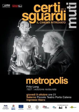 Giovedì prossimo, 9 ottobre 2025, al Piccolo Teatro Porta Catena di Salerno, a conclusione della rassegna “Certi sguardi muti”, verrà proiettato il film Metropolis di Fritz Lang.