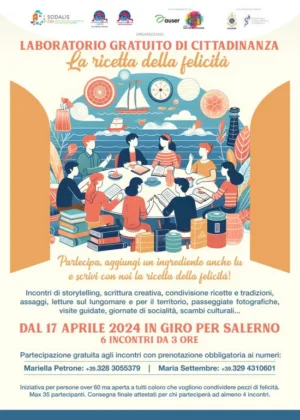Ha inizio il laboratorio gratuito: la ricetta della felicità. Primo appuntamento, dei 6 previsti, il prossimo 17 aprile, alle 16:00 presso la sede AUSER di Via Portacatena a Salerno.