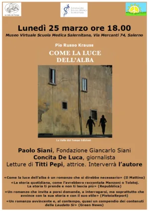 Lunedì 25 marzo alle ore 18:00 presso il Museo Virtuale Scuola Medica Salernitana, ci sarà la presentazione del romanzo di Pio Russo Krauss: Come la luce dell’alba.