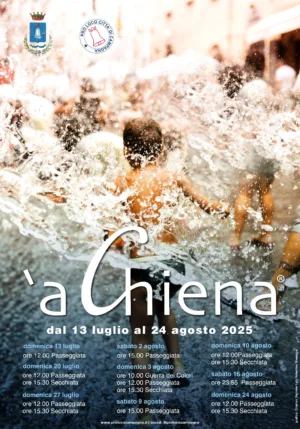Rinfrescati a suon di schizzi con ‘A secchiata, fai due passi tra i vicoli del centro storico durante La Passeggiata o vivi la suggestione notturna del borgo invaso dall’acqua alla ‘A Chiena di Mezzanotte. Qualunque sia la tua età, che tu venga con amici o con la tua famiglia, scopri i diversi appuntamenti e acquista il tuo biglietto.