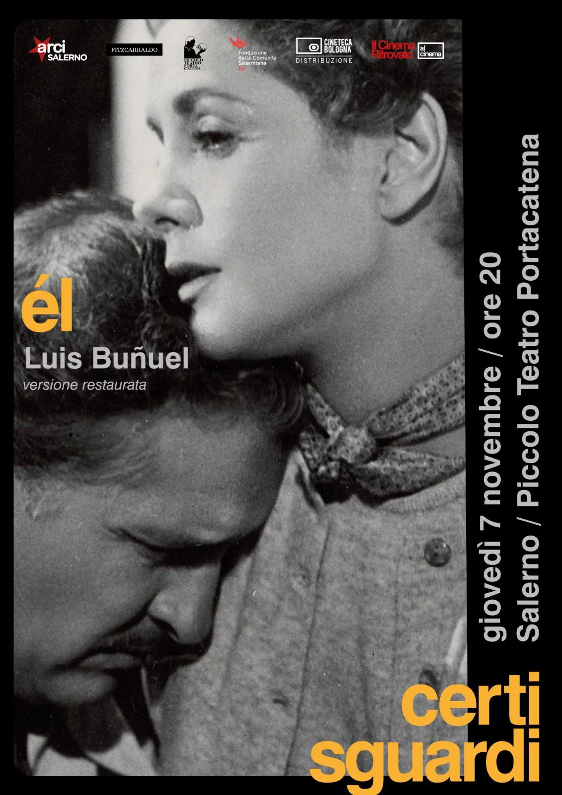 Dietro la facciata di uomo retto e timorato di Dio, il protagonista di “El” è un paranoico feticista, ossessionato dall’idea del tradimento da parte della moglie. Uno dei capolavori del grande maestro spagnolo, in edizione restaurata, in prima visione a Salerno. Giovedì prossimo, 7 novembre, alle ore 20, con ingresso gratuito fino ad esaurimento posti a partire dalle 19,15. Al Piccolo Teatro Porta Catena, per la rassegna “ Certi sguardi, il Cinema ritrovato”.