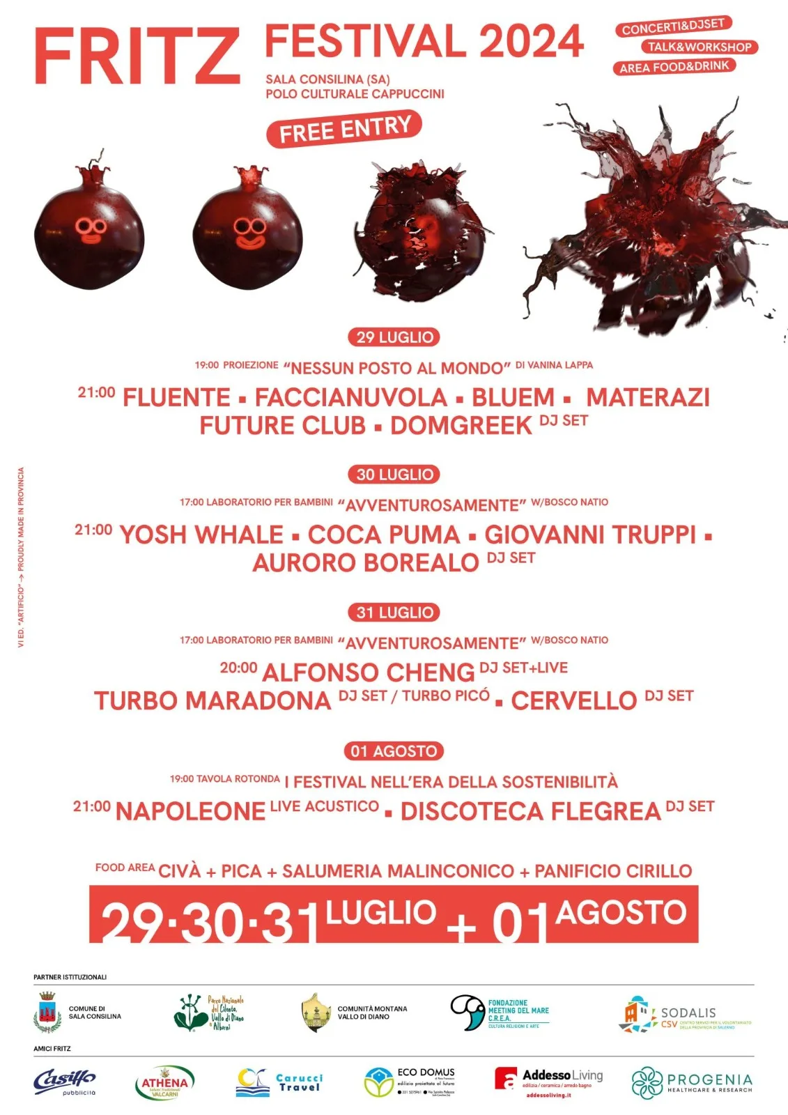 Amico Fritz APS nasce dal senso di responsabilità sentito nei confronti dei propri luoghi d’origine e dalla volontà di contrastare le previsioni macroeconomiche che non ne colgono a pieno le potenzialità. A fronte dell’emigrazione di massa è evidente che un’alternativa esiste e, nella risonanza data al tema dello spopolamento delle aree interne, è a questa che si vuole dar voce attraverso la costituzione di una prospettiva che lo contrasti. Provare che nella provincia si può trovare la dimensione ideale per crescere, per fare cultura, per investire, per ritornare. Fritz Festival è ad oggi una delle principali realtà di musica indipendente del Sud Italia. Fritz Festival è un evento multiculturale promosso da Amico Fritz APS, che nel 2024 raggiunge la sua sesta edizione. L’associazione è attiva dal 2018, ad oggi conta più di 200 soci, di cui circa 50 volontari attivi durante l’organizzazione di Fritz Festival. L’evento è un appuntamento culturale multidisciplinare, che si tiene a Sala Consilina nell’area esterna del Polo Culturale Cappuccini e che continua a catalizzare l’attenzione di un pubblico sempre maggiore, in Campania e in tutto il Sud Italia. Ogni anno il tema scelto viene approfondito attraverso varie espressioni artistiche e culturali e, grazie all’intervento di artisti, giornalisti e musicisti, trova nuove espressioni e modalità di rappresentazione.