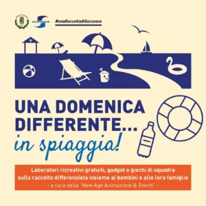 A partire Domenica 6 luglio e per tutte le domeniche fino al 24 agosto ci sarà l’iniziativa di sensibilizzazione promossa dal Comune di Salerno in collaborazione con Salerno Pulita “Una domenica differente…. in spiaggia”. L’obiettivo è promuovere la raccolta differenziata e l’inclusione sociale in modo leggero e spensierato, attraverso attività di animazione gratuite direttamente sulle spiagge di Salerno.