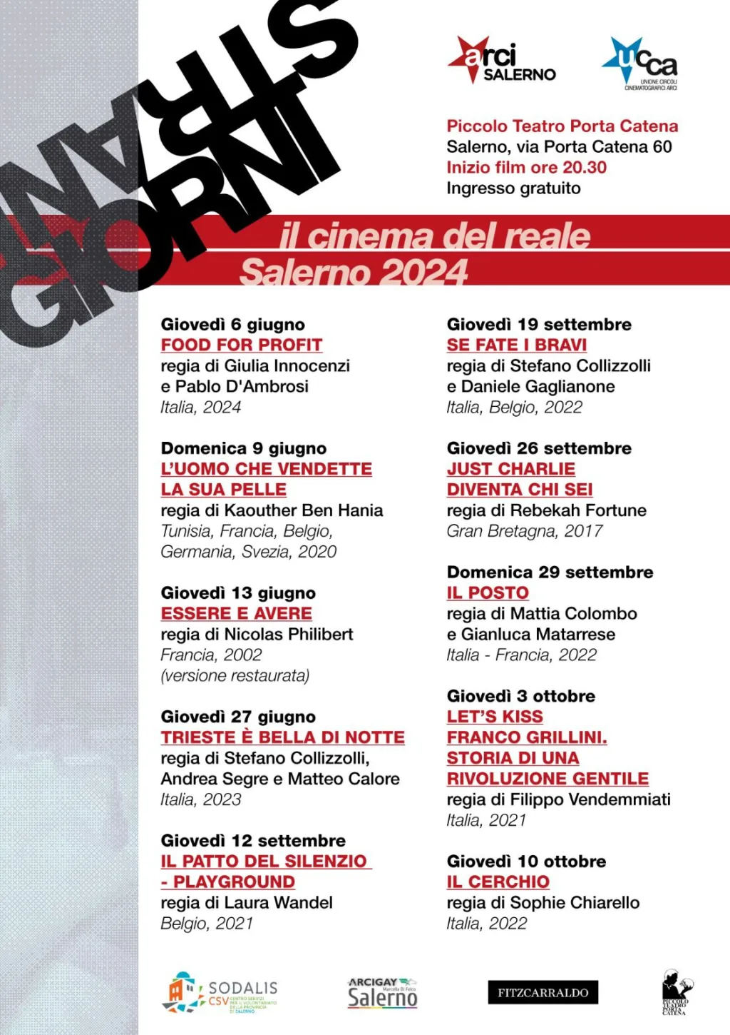 Dal 6 giugno, a Salerno, presso il Piccolo Teatro Porta Catena, la rassegna cinematografica realizzata da Arci Salerno e UCCA, in collaborazione con Arcigay Salerno “Marcella Di Folco” e Piccolo Teatro Porta Catena, e con il sostegno di Sodalis ETS – CSV Salerno.