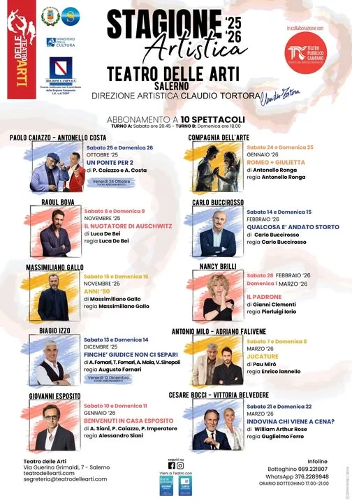 Un momento importante per la cultura cittadina e regionale, che ha confermato il valore e la centralità del Teatro Delle Arti nella vita culturale salernitana. Il cartellone 2025/2026 si conferma tra i più ricchi e variegati della scena campana, con 10 spettacoli in abbonamento e 3 eventi fuori abbonamento, portando sul palco grandi nomi del teatro italiano e una proposta artistica capace di spaziare dalla comicità alla prosa contemporanea, dal teatro civile alla musica, con uno sguardo sempre attento all’attualità.
