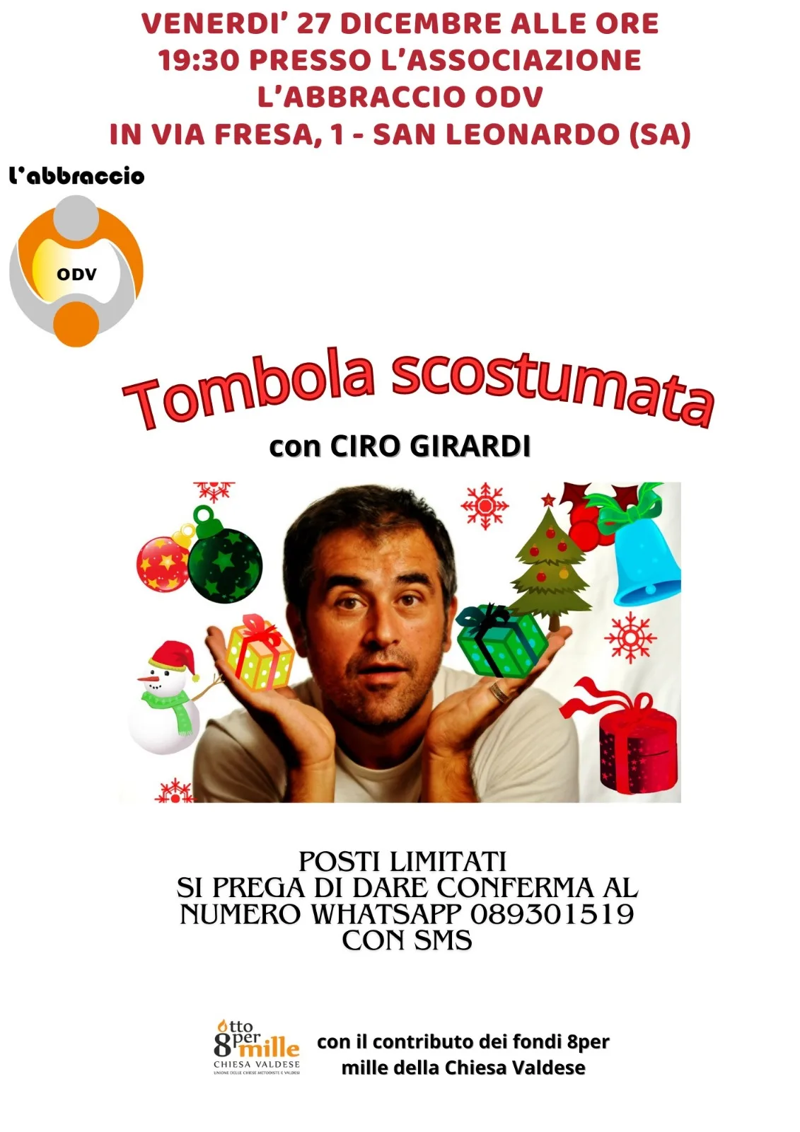 Venerdì 27 dicembre alle ore 19:30 presso l’associazione L’Abbraccio situata in Via Fresa, 1 San Leonardo, ci sarà la Tombola Scostumata con Ciro Girardi.